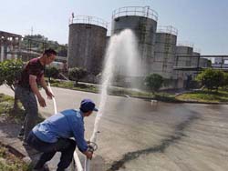 根據(jù)企業(yè)應(yīng)急預(yù)案要求及安全計(jì)劃安排,安全上樹(shù)立憂患意識(shí),做到常備不懈;5月12日公司安環(huán)部組織當(dāng)班操作工、動(dòng)力部安環(huán)部、生產(chǎn)部、倉(cāng)管人員進(jìn)行重大危險(xiǎn)源噴泡沫應(yīng)急演練。